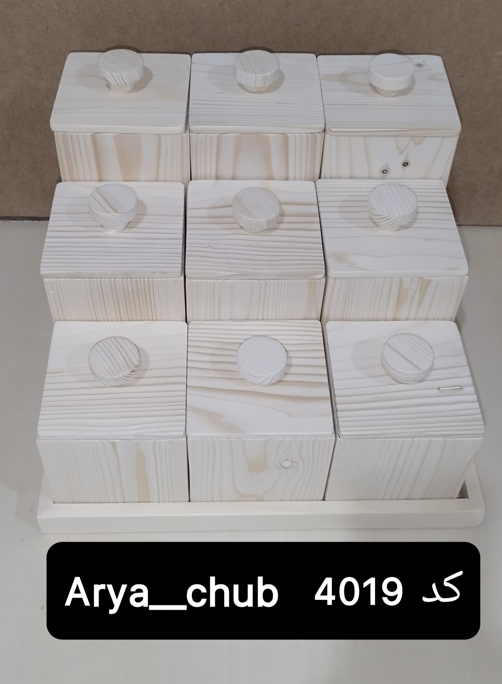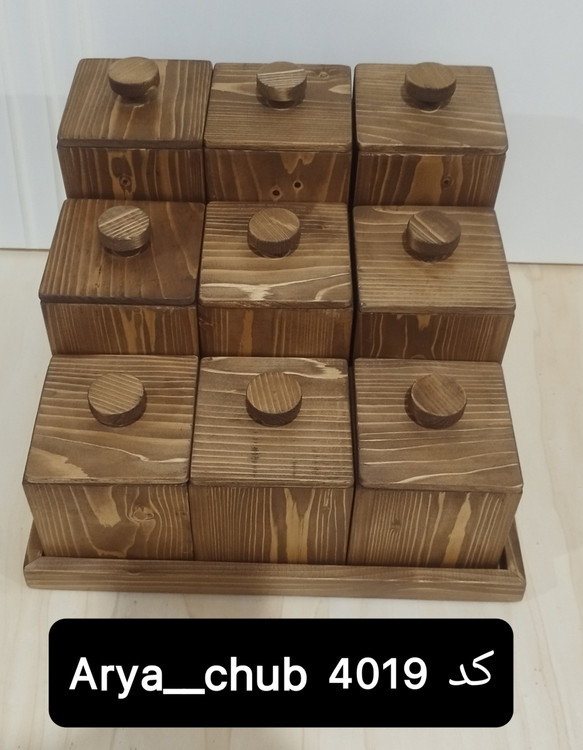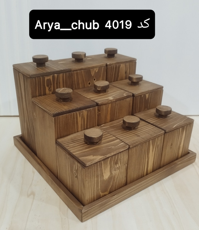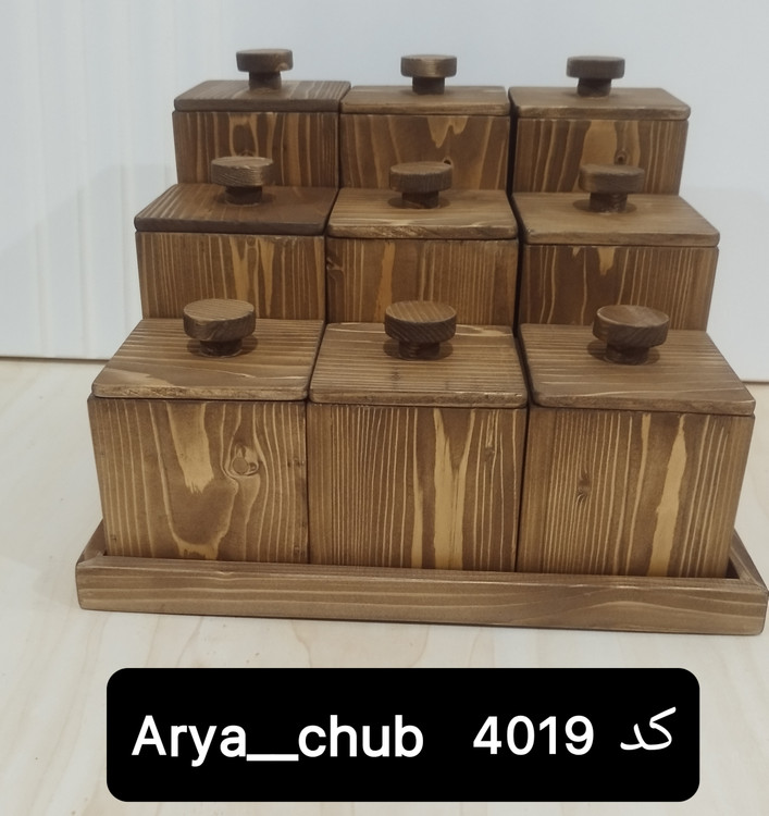 بانکه ادویه جات یا پاسماوری ۹ تکه با سینی مدل 4019 یک ست کاربردی و شیک برای نظمدهی و نگهداری مواد غذایی، ادویهها و خشکبار است. این محصول با **کفی چوب روسی مقاوم** و بانکه های کامل چوب روس با کیفیت، جلوهای زیبا و منظم به فضای آشپزخانه شما میبخشد و دسترسی به محتویات بانکهها را آسان میکند.