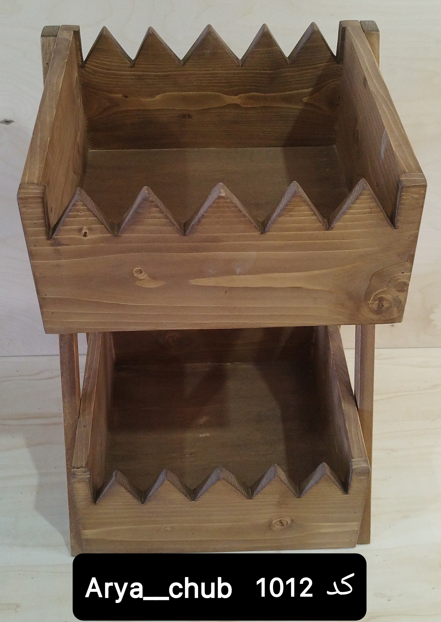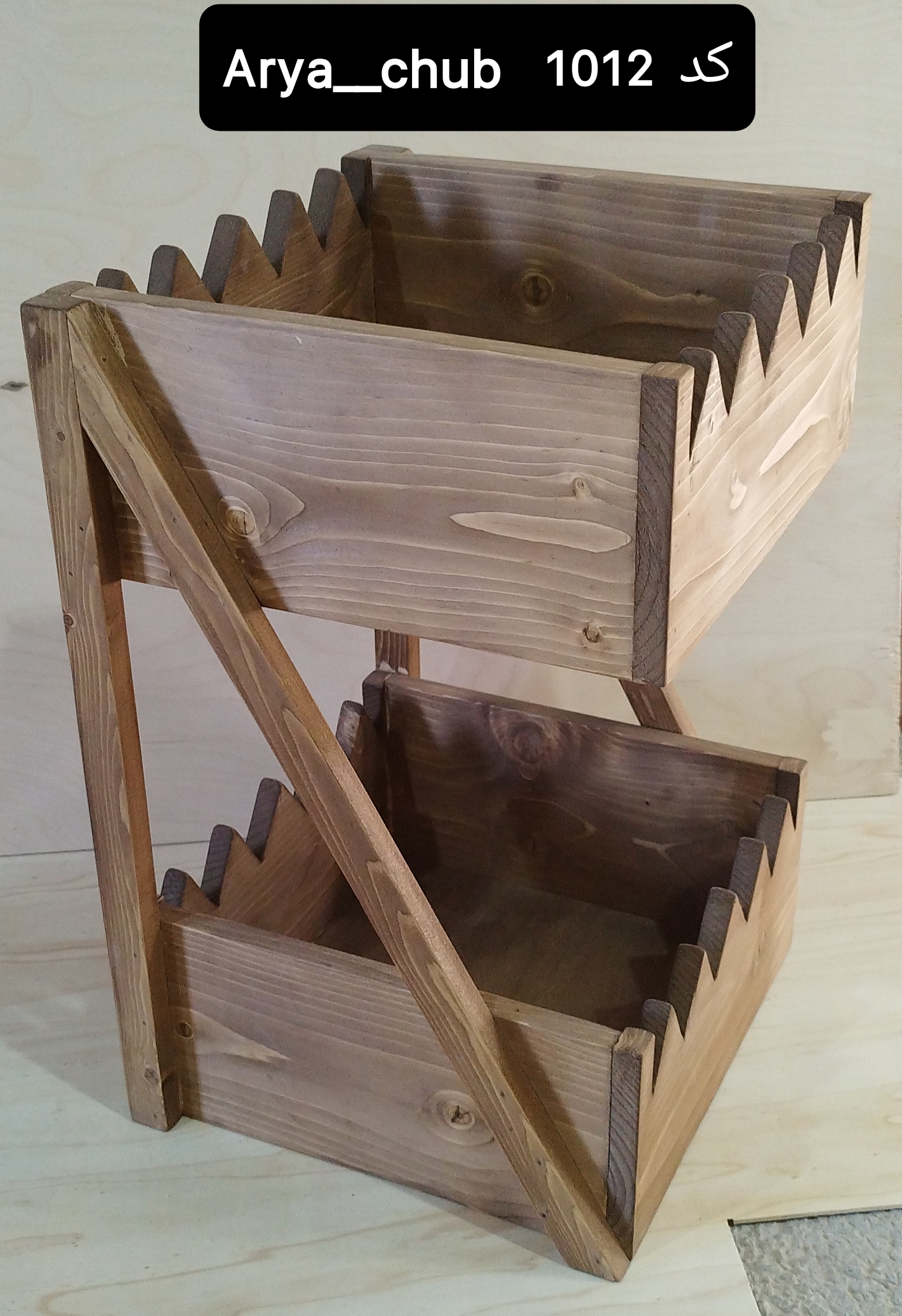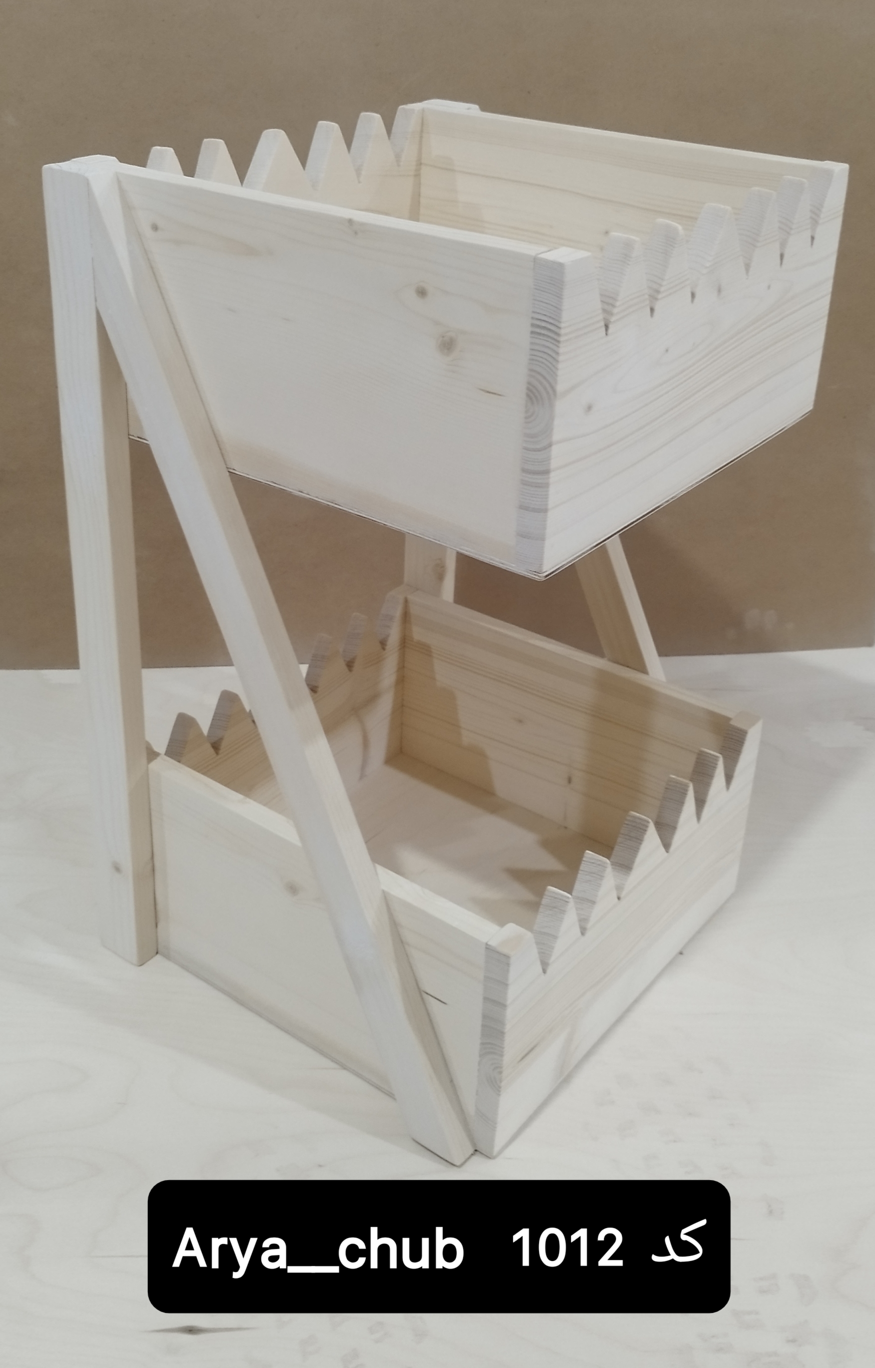 استند سیب و پیاز دو طبقه، ساخته شده از چوب روسی طبیعی و دستساز.